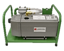 In order to place even larger vacuum bells under vacuum practically immediately after they have been placed on a possibly quite long vacuum hose, vacuum pumps with high suction capacities (up to 16 m3/h) are used in VSP leak testing devices. For the completion of a VSP leak testing device, the vacuum pumps together with all additional units are installed in a stable, welded tubular steel frame. Due to their extensive freedom from maintenance and their robust and consistent design suitable for construction sites, VSP leak detectors have proven themselves in particular for mobile applications.